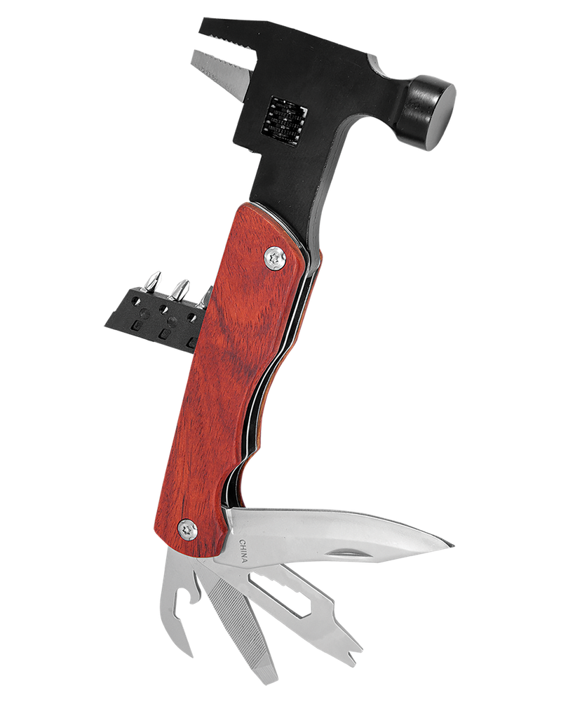 Hammer Multi-Tool includes: Hammer, Adjustable Wrench, Knife, Bottle Opener,